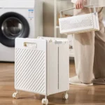 Its large-capacity design accommodates plenty of clothes, towels, or other essentials, while smooth-rolling wheels make it easy to move around—even when fully loaded. The foldable construction allows for convenient storage when not in use, making it ideal for modern, space-conscious living.